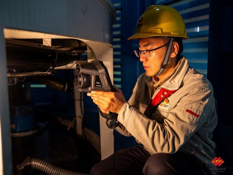 徐博海红外测温为设备“听诊把脉”。徐博海利用红外测温仪对重要发电设备开展测温,为设备“听诊把脉”,预防生病,从严从细从严抓好设备安全生产工作,为设备安全“过冬”提供有效保障。