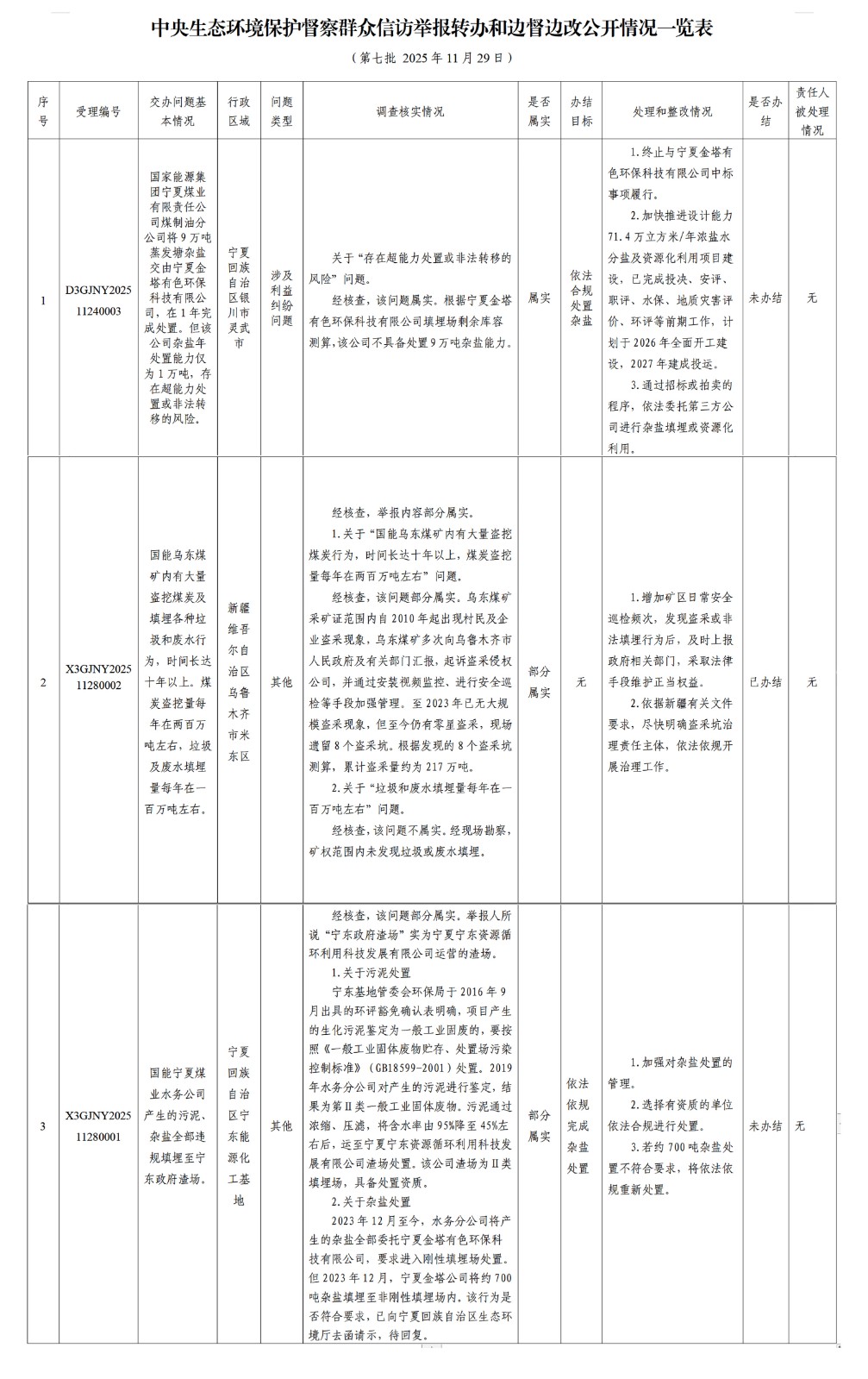 中央生态环境保护督察群众信访举报转办和边督边改公开情况一览表(第七批 2025年11月29日)