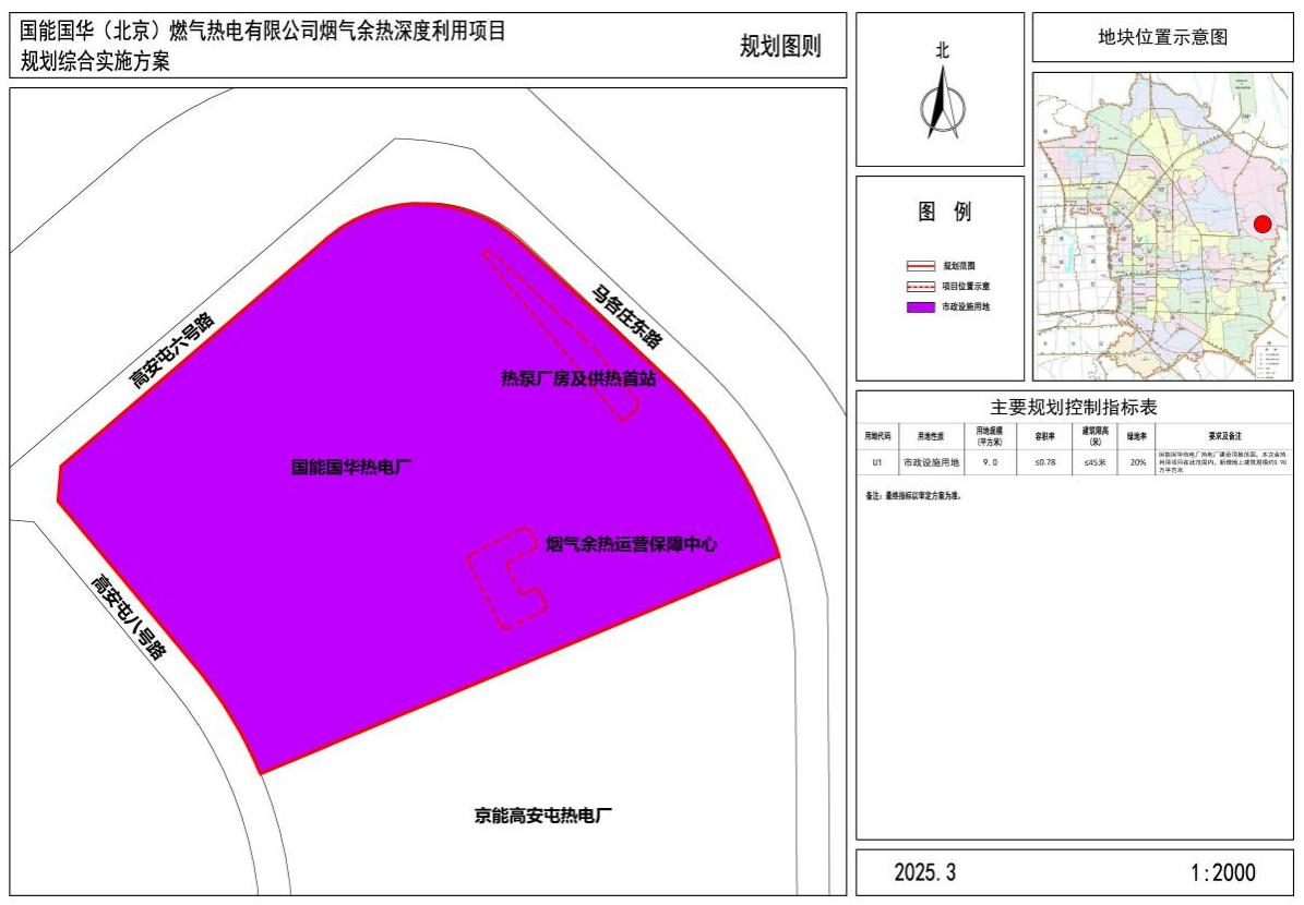 根据《中华人民共和国城乡规划法》(中华人民共和国主席令第七十四号)及《北京市城乡规划条例》的有关规定,现对国能国华(北京)燃气热电有限公司烟气余热深度利用项目规划综合实施方案成果进行公示,听取公众意见,公示期限30天(相关规划指标以最终审定方案为准)。