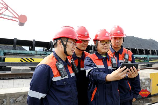 图为黄骅港务在煤炭堆场收看庆祝中国共产党成立100周年大会盛况