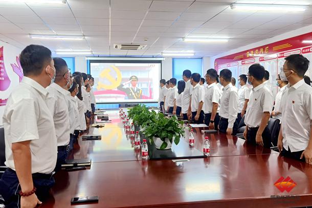 图为黄骅港务生产三部在会议室收看庆祝中国共产党成立100周年大会盛况