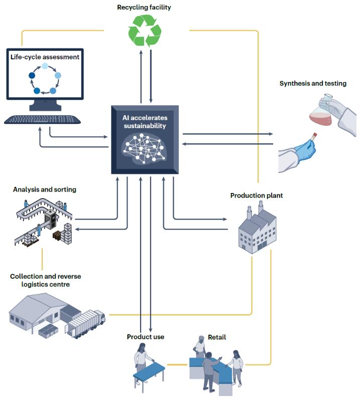 图为人工智能作为可持续发展和材料循环的加速器示意图
