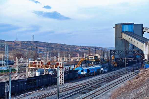 图为列车在新朔铁路点岱沟站场装车作业
